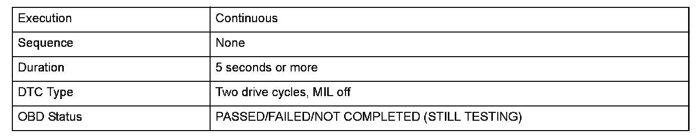 Monitor Execution, Sequence, Duration, DTC Type, OBD Status
