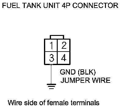 10. Connect fuel tank unit 4P connector terminal No. 3 to body ground with a jumper wire.