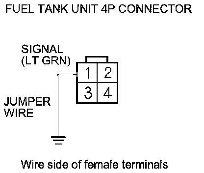 14. Connect fuel tank unit 4P connector terminal No. 1 to body ground with a jumper wire.