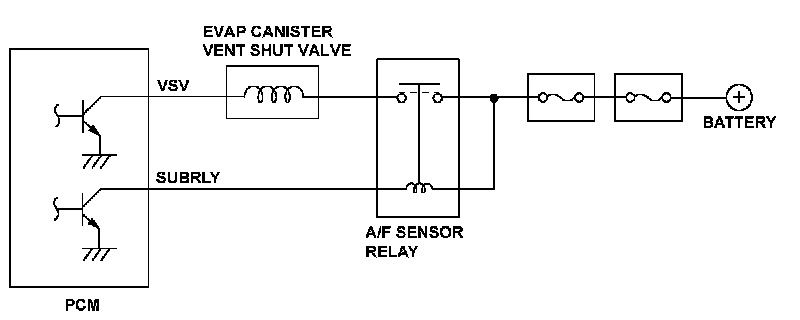 The evaporative emission (EVAP) canister vent shut valve is attached to the EVAP canister to control the venting of the EVAP canister to atmosphere. The EVAP canister vent shut valve is open (open to atmosphere) when the VSV signal is OFF. If the return signal is "OFF" when the powertrain control module (PCM) outputs the "ON" signal to the EVAP canister vent shut valve, the PCM detects a malfunction and stores a DTC.