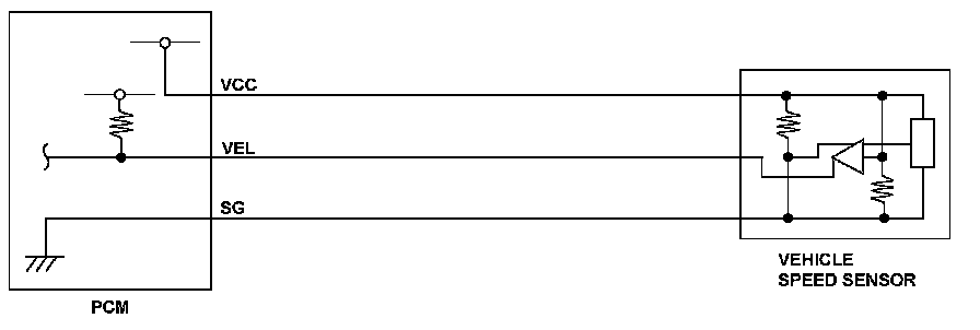 The vehicle speed sensor is attached to the outside of the transmission housing. The vehicle speed sensor detects the number of revolutions of the secondary driven gear and sends a pulsing signal to the powertrain control module (PCM). The PCM converts the pulsing signal into vehicle speed. If no pulses occur with the secondary driven gear rotating, the PCM detects a malfunction that may be caused by an open, a temporary open, or a short to ground. Based on the correlation between the vehicle speed sensor and the CVT output shaft (driven pulley) speed sensor, the PCM detects a malfunction and stores a DTC.