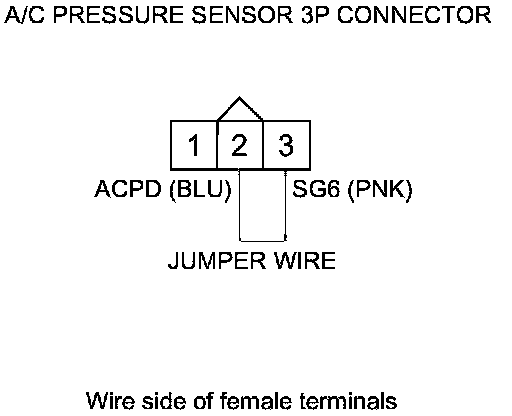 11. Remove the jumper wire from the A/C pressure sensor 3P connector.