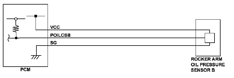 The rocker arm oil pressure sensor B output voltage is 0.18 V or less for at least 2 seconds.