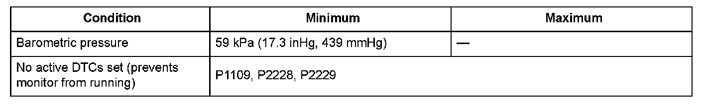 Conditions for setting the DTC