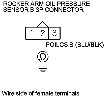 11. Check for continuity between rocker arm oil pressure sensor B 3P connector terminal No. 2 and body ground.