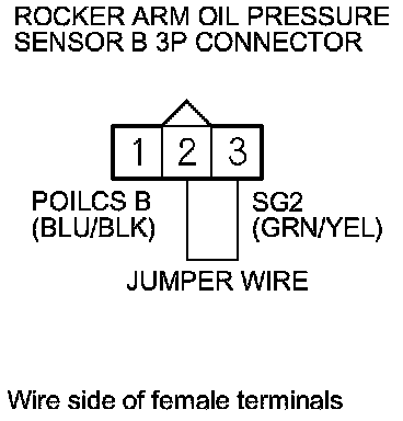 5. Connect rocker arm oil pressure sensor B 3P connector terminals No. 2 and No. 3 with a jumper wire.