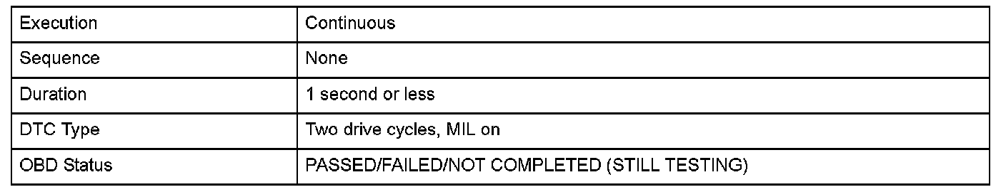 Monitor Execution, Sequence, Duration, DTC Type, OBD Status