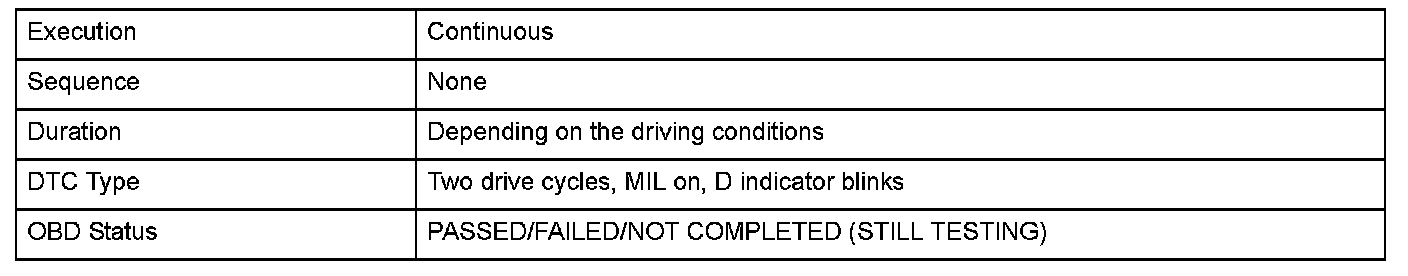 Monitor Execution, Sequence, Duration, DTC Type, OBD Status