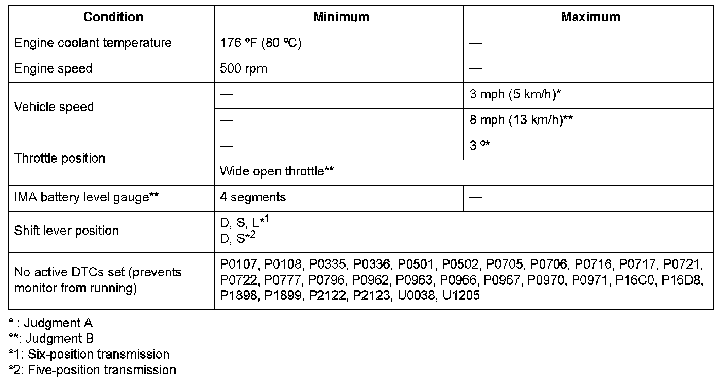 The CVT drive pulley pressure control solenoid valve controls hydraulic pressure to the drive pulley. When the pulley ratio with the vehicle stopped and the throttle closed is overdrive while in D or S, and the estimated input torque when starting is a specified value, but the pulley ratio is not within the pulley ratio range equivalent to the belt slippage, the powertrain control module (PCM) detects a malfunction and stores a DTC.