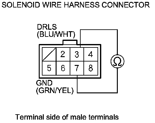 7. Measure the resistance between solenoid wire harness connector terminals No. 3 and No. 7.