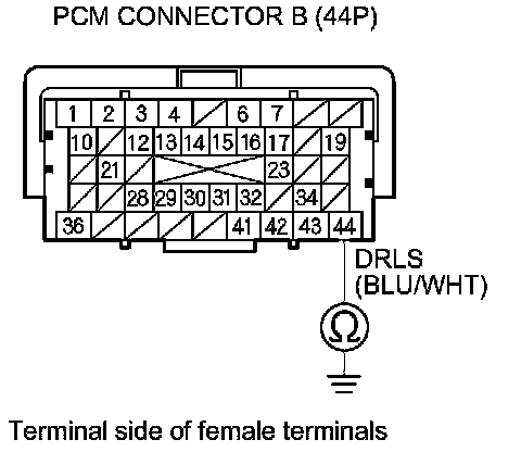 13. Check for continuity between PCM connector terminal B44 and body ground.