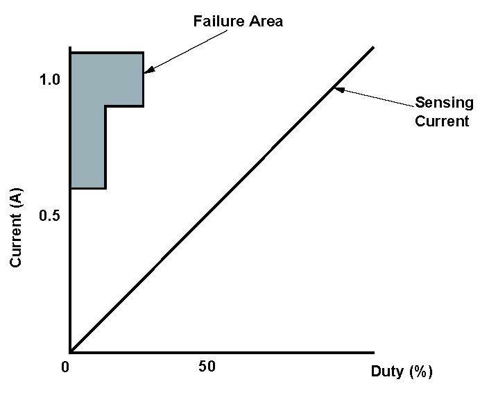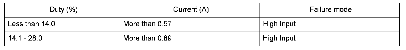 The measured current for the PCM's command value is as specified here for at least 1 second.