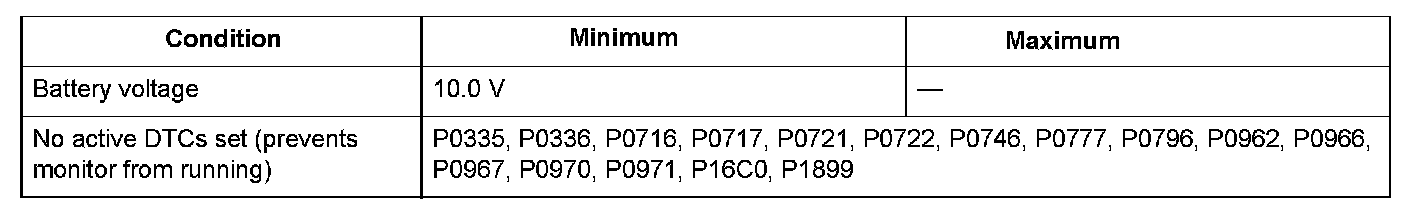 Conditions for setting the DTC