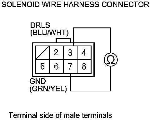 7. Measure the resistance between solenoid wire harness connector terminals No. 3 and No. 7.