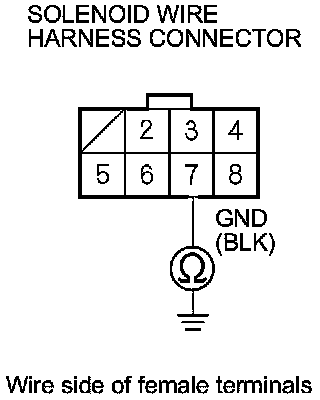 11. Check for continuity between solenoid wire harness connector terminal No. 7 and body ground.