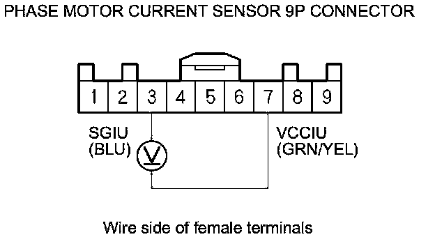 14. Connect phase motor current sensor 9P connector terminals No. 4 and No. 7 with a jumper wire.