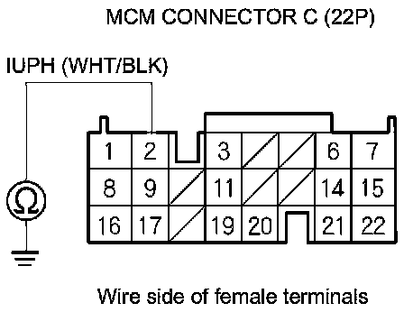 24. Check for continuity between MCM connector terminal C2 and body ground.