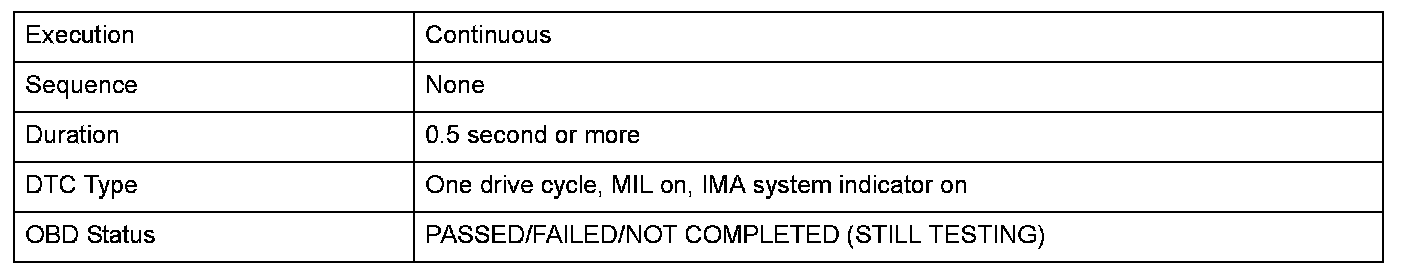 Monitor Execution, Sequence, Duration, DTC Type, OBD Status