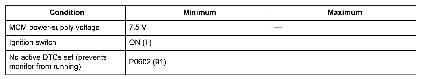 Conditions for setting the DTC