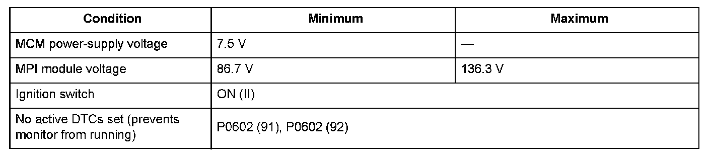 - The difference between the commanded DC-DC converter voltage and the MCM voltage is 2.11 V or more for at least 60 seconds.