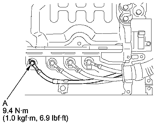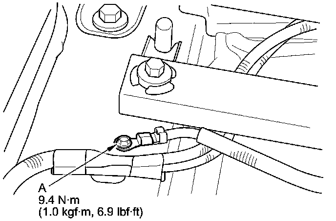 20. Check the PCU case side DC-DC converter ground cable terminal connection (A).