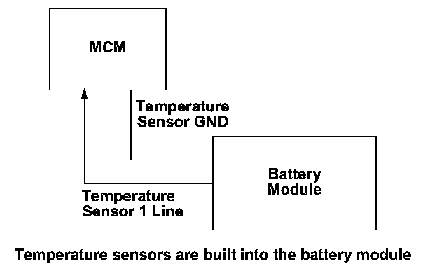 Three battery module temperature sensors are attached to the battery module, and the motor control module (MCM) continuously monitors the battery module temperature. If the motor control module (MCM) input voltage from battery module temperature sensor 1 is a specified voltage for a set time, a malfunction is detected and a DTC is stored.