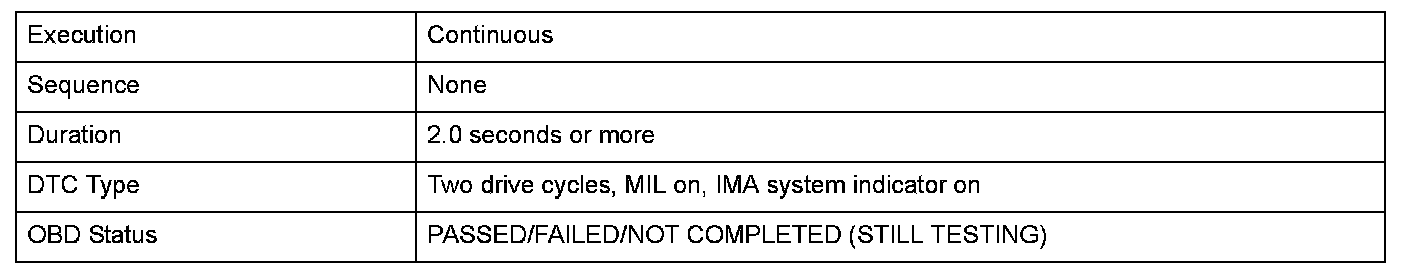 Monitor Execution, Sequence, Duration, DTC Type, OBD Status
