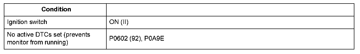 Conditions for setting the DTC