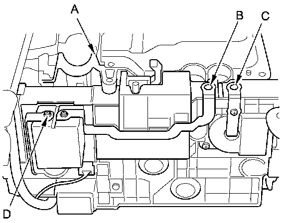 13. Measure the resistance between the PCU case (A) and junction board +terminal (B), -terminal (C), and high voltage contactor terminal (D) individually.