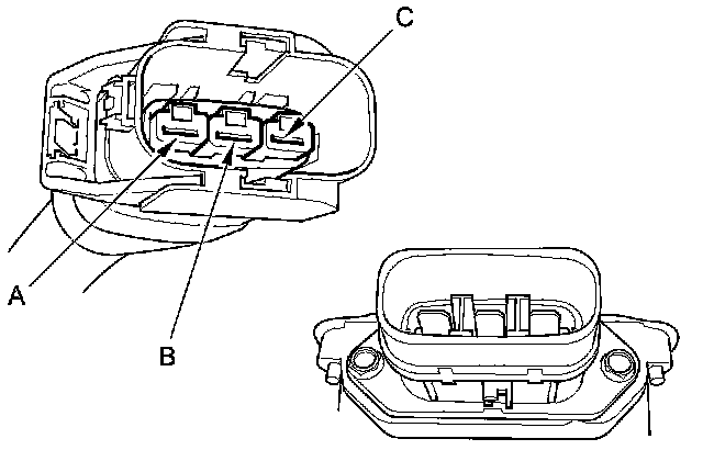 21. Measure the resistance between body ground and the MPI module terminals (A, B, and C) individually.