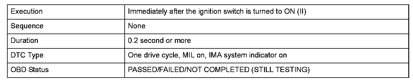 The motor control module (MCM) calculates the offset value of the battery current sensor during a no voltage condition of the battery module immediately after the ignition switch is turned to ON (II). The MCM converts (analog/digital conversion) the ISOC signal input voltage and when the difference between the maximum value and the minimum value of eight continuous inputs are within 0.015 V, the average value of eight battery current sensor inputs are calculated. When the battery current sensor average value is out of a specified range, a malfunction is detected and a DTC is stored.