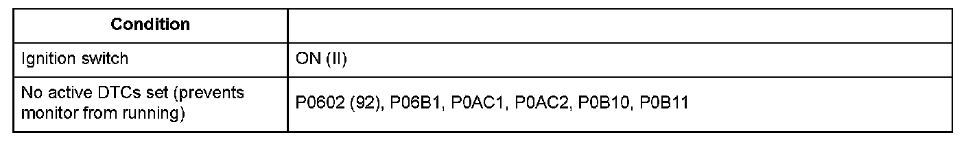 Conditions for setting the DTC