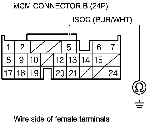 19. Check for continuity between body ground and MCM connector terminal B5.