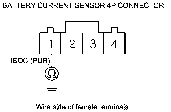 22. Check for continuity between body ground and battery current sensor 4P connector terminal No. 1.