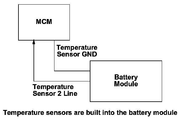 Three battery module temperature sensors are attached to the battery module, and the motor control module (MCM) continuously monitors the battery module temperature. If the motor control module (MCM) input voltage from battery module temperature sensor 2 is a specified voltage for a set time, a malfunction is detected and a DTC is stored.