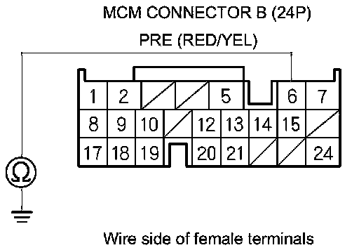33. Check for continuity between MCM connector terminal B6 and body ground.