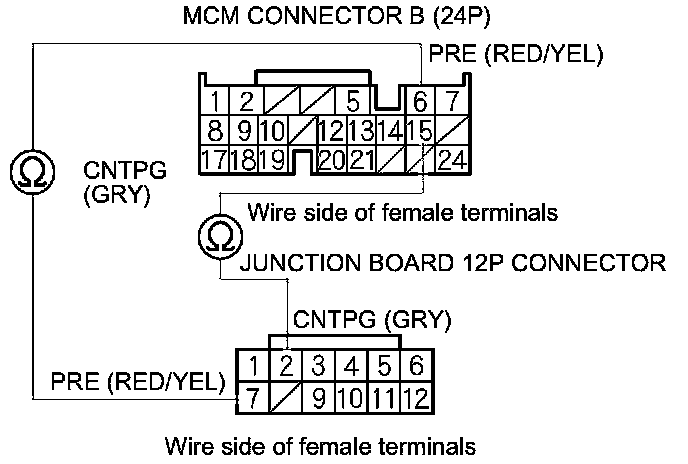 - MCM connector terminal B6 and junction board 12P connector terminal No. 7.