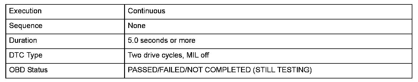 Monitor Execution, Sequence, Duration, DTC Type, OBD Status