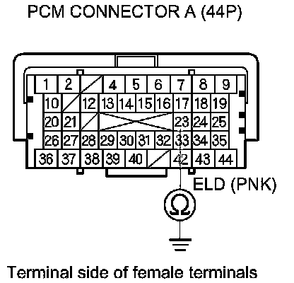 Check for poor connections or loose terminals at the ELD and the PCM, then go to step 1.