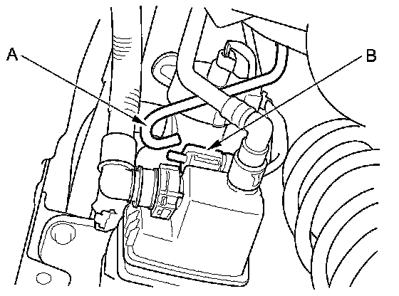 18. Disconnect the vent hose (A) from the FTP sensor (B).