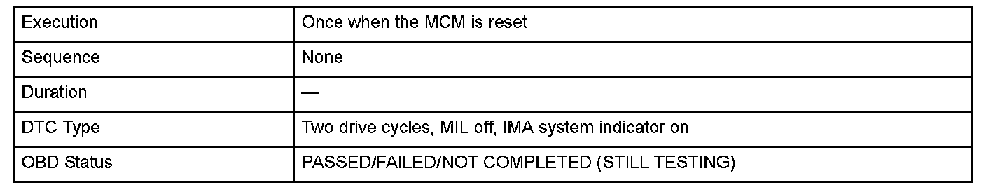 The motor control module (MCM) controls the IMA motor by detecting the rotor position angle using the motor rotor position sensor. The MCM detects zero point offset to improve torque accuracy and motor efficiency. When the zero point offset detection value is a permissible value, the MCM detects a malfunction and stores a DTC.