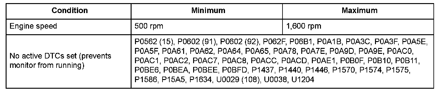 Monitor Execution, Sequence, Duration, DTC Type, OBD Status