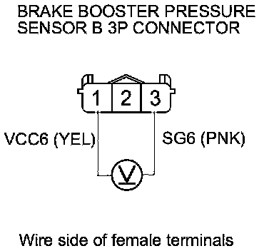 7. Measure the voltage between brake booster pressure sensor B 3P connector terminals No. 1 and No. 3.