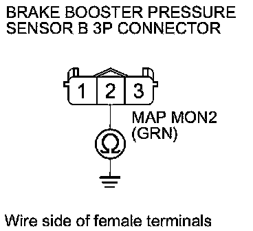 15. Check for continuity between brake booster pressure sensor B 3P connector terminal No. 2 and body ground.