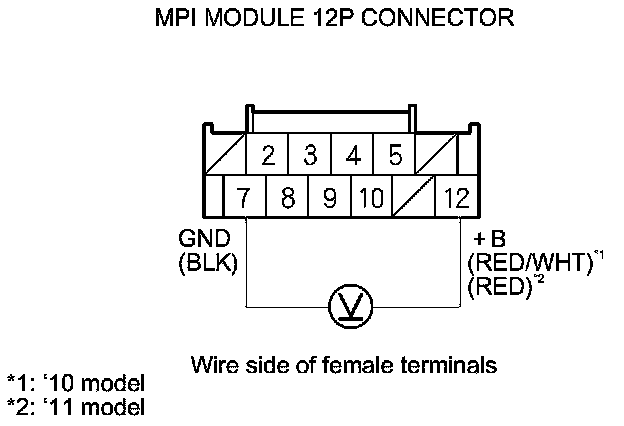 24. Measure the voltage between MPI module 12P connector terminals No. 7 and No. 12.