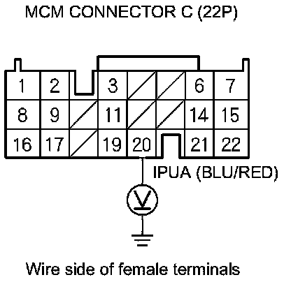 26. Measure the voltage between MCM connector terminal C20 and body ground.
