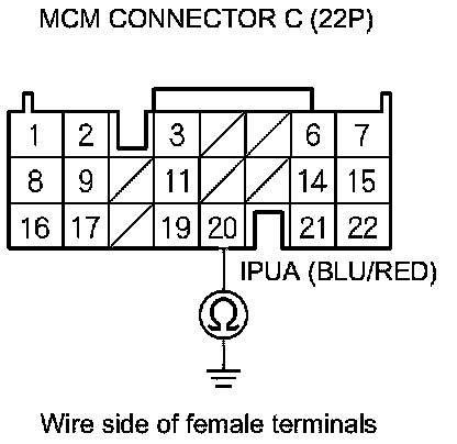 20. Measure the resistance between MCM connector terminal C20 and body ground.