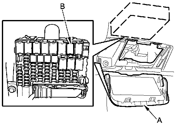 4. Open the fuse access panel (A), then remove the ETCS control relay (B) from the under-dash fuse/relay box.