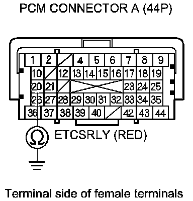 Check for poor connections or loose terminals at the ETCS control relay and the PCM. If the PCM was updated, substitute a known-good PCM, then recheck. If the PCM was substituted, go to step 1.