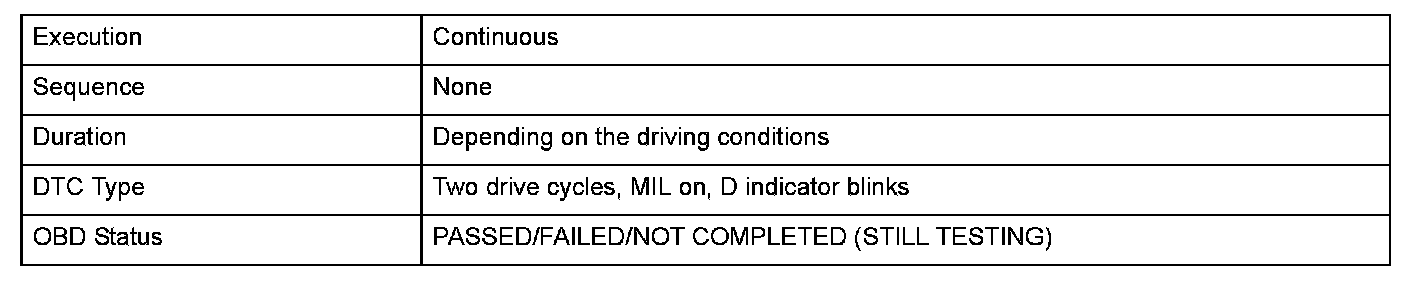 Monitor Execution, Sequence, Duration, DTC Type, OBD Status